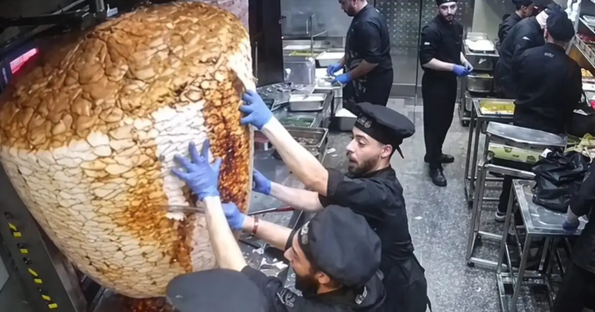 Οι εργαζόμενοι στο σουβλατζίδικο στην Αίγυπτο είχαν ετοιμάσει μια τεράστια ποσότητα ντονέρ στη σούβλα, δημιουργώντας έναν πραγματικά εντυπωσιακό γύρο με δεκάδες κιλά κρέας.