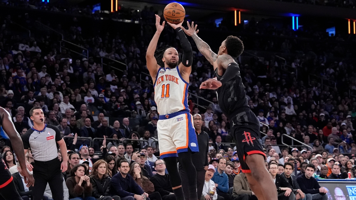 Ο Τζάλεν Μπράνσον ήταν εύστοχος 29,5 δευτερόλεπτα πριν τη λήξη για τους γηπεδούχους Νικς Νέας Υόρκης, οι οποίοι πραγματοποίησαν μια δυναμική ανατροπή στο τέταρτο δεκάλεπτο σε μία διαφορά 18 πόντων, αιφνιδιάζοντας τους Χιούστον Ρόκετς με 108-106.