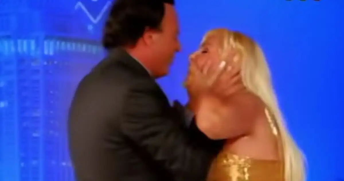 Στα πλάνα διακρίνεται να την αγκαλιάζει και να την κρατά από το κεφάλι, επιμένοντας παρά τις αντιδράσεις της, μέχρι να καταφέρει να τη φιλήσει.