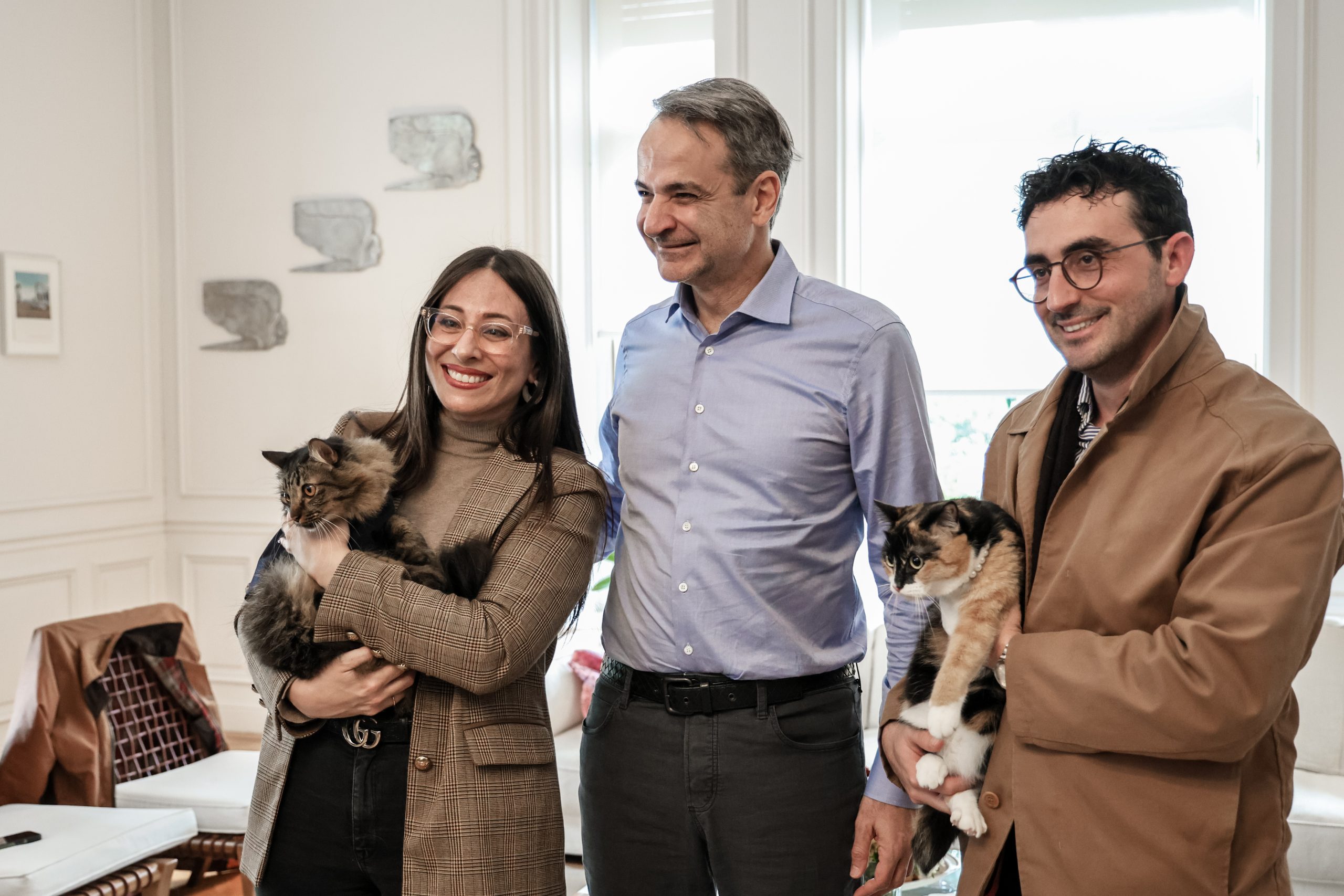 Έλληνες πολίτες που επαναπατρίστηκαν από τη Μέση Ανατολή μαζί με τα ζώα συντροφιάς τους, μέσω της ειδικής πτήσης που οργάνωσε το Υπουργείο Εξωτερικών σε συνεργασία με την Aegean, υποδέχτηκε το Σάββατο (21/03) ο Κυριάκος Μητσοτάκης στο Μέγαρο Μαξίμου.