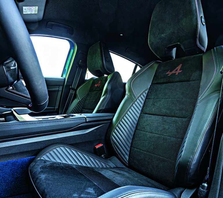 Ειδικά για το πρώτο φροντίζουν αυτά τα εξαιρετικά μπάκετ καθίσματα, αποκλειστικά για το Rafale, με επένδυση από ανακυκλωμένη Alcantara, τα οποία μάλιστα εφοδιάζονται με το φωτιζόμενο σήμα της Alpine που μπορεί να αλλάξει χρωματισμό ανάλογα με την επιλογή που έχει γίνει στον εσωτερικό φωτισμό.