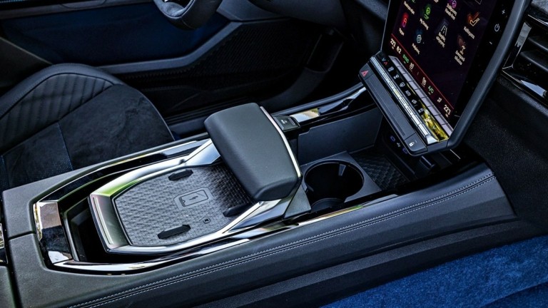 Οι χώροι είναι γενναιόδωροι. Οι πίσω επιβάτες θα καθίσουν άνετα, ανεξαρτήτως σωματότυπου, και δεν θα αντιμετωπίσουν πρόβλημα ούτε με τα κεφάλια τους, παρά την κουπέ σχεδίαση. Υπάρχουν επαρκείς θήκες για μικροπράγματα, ενώ το συρόμενο εμπρός υποβραχιόνιο που θυμίζει το throttle lever πολεμικού αεροσκάφους (τι σόι Rafale θα ήταν αν δεν είχε…) κρύβει τις ποτηροθήκες, ενσωματώνει το μπουτόν από το οποίο επιλέγεις τι είδους λειτουργία θέλεις (υβριδική, αμιγώς ηλεκτρική κ.λπ.), αλλά κυρίως είναι πολύ βολικό για να ακουμπάς ενίοτε το δεξί σου χέρι σε μεγάλες αποστάσεις. Εξίσου μεγάλο είναι και το πορτ-μπαγκάζ που φτάνει σε χωρητικότητα τα 627 lt.