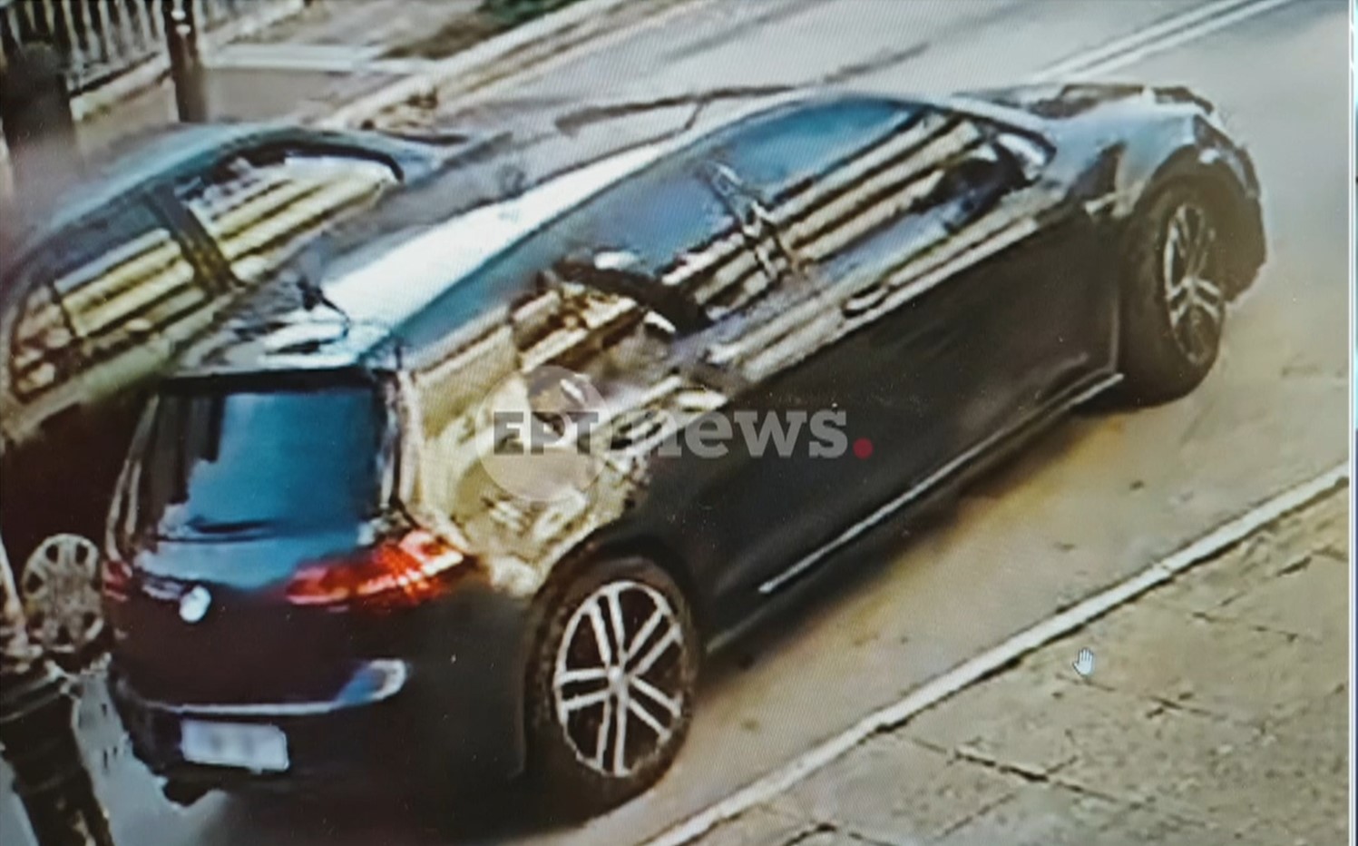 Η φωτογραφία δείχνει το μαύρο αυτοκίνητο των δραστών, στο οποίο είχαν τοποθετηθεί πλαστές πινακίδες κυκλοφορίας. Σύμφωνα με πληροφορίες, μετά τη ληστεία το όχημα κατευθύνθηκε προς τον Ισθμό της Κορίνθου και στη συνέχεια μέσω της νέας Εθνικής οδού Κορίνθου – Αθηνών έφθασε στην Αττική, όπου εκεί χάθηκαν τα ίχνη του.