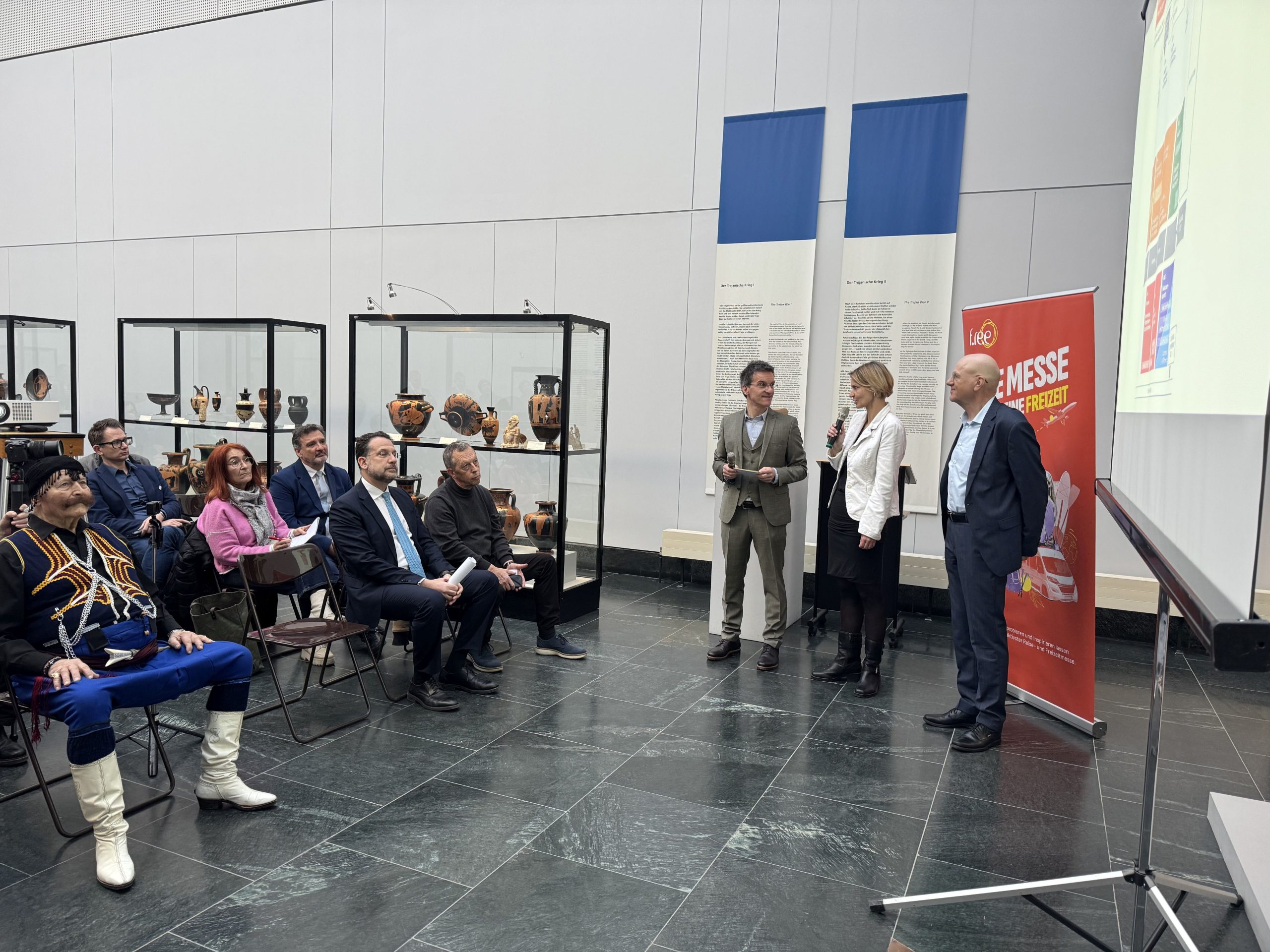 Η εμβληματική Antikensammlung (Συλλογή αρχαίων κυλίκων) απέναντι από τη Γλυπτοθήκη και δίπλα στα Προπύλαια, το μνημείο αφιερωμένο στον εθνικοαπελευθερωτικό αγώνα των Ελλήνων, δεν είναι μόνον ένα από τα σημαντικότερα μνημεία, μαγνήτης για όσους επισκέπτονται το Μόναχο. Ήταν και ο χώρος για τη συνέντευξη τύπου την Τρίτη (10/02) για την ετήσια τουριστική έκθεση f.re.e 18 – 22 Φεβρουαρίου. Η επιλογή του χώρου είχε και έναν ακόμα συμβολισμό. Στη φετινή επετειακή 55η f.re.e. τιμώμενη περιφέρεια είναι η Κρήτη.