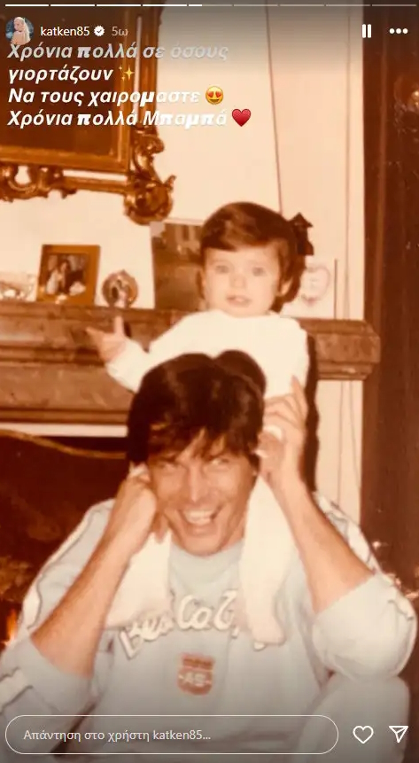 Με αφορμή τη σημερινή ημέρα, Κυριακή 26 Οκτωβρίου, που εορτάζεται ο Άγιος Δημήτριος, η Κατερίνα Καινούργιου έγραψε στη φωτογραφία με ένα τρυφερό μήνυμα το οποίο έλεγε: «Χρόνια πολλά σε όσους γιορτάζουν. Να τους χαιρόμαστε. Χρόνια πολλά μπαμπά».