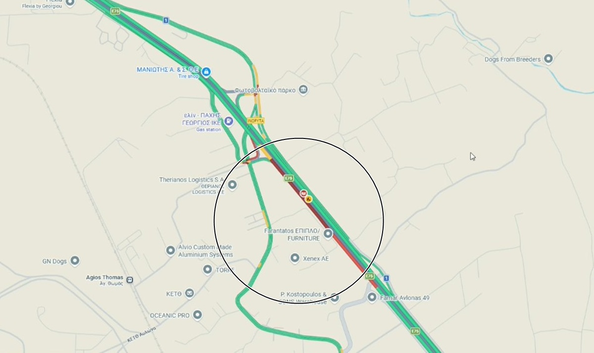 Η κυκλοφορία διεξάγεται μόνο από μια λωρίδα κυκλοφορίας, με την Τροχαία να βρίσκεται στο σημείο και να προσπαθεί να διευκολύνει τους οδηγούς που έχουν σχηματίσει μεγάλη ουρά με τα οχήματά τους.
