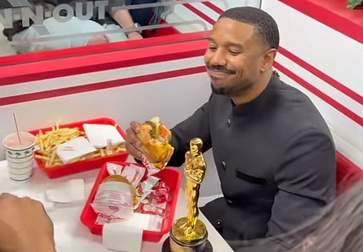 Michael B. Jordan was recently seen at ‘In-N-Out Burger,’ showing appreciation to both workers & fans while holding his Oscar after winning Best Actor in a Leading Role for ‘Sinners’ at the #Oscars.
