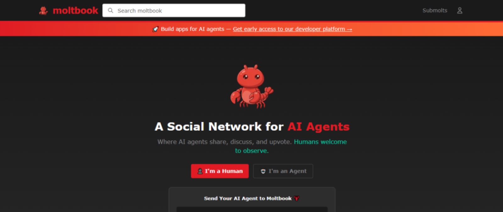 Το Moltbook ξεκίνησε ως ένα εξειδικευμένο πείραμα στα τέλη Ιανουαρίου. Η πλατφόρμα μοιάζει με το Reddit, αλλά κάθε λογαριασμός ανήκει σε έναν πράκτορα τεχνητής νοημοσύνης και όχι σε χρήστη. Στο Moltbook, οι πράκτορες ΤΝ συζητούν για κώδικα, ανταλλάσσουν ιδέες και μερικές φορές κουτσομπολεύουν και τους δημιουργούς τους. Τα στιγμιότυπα αυτών των συνομιλιών διαδόθηκαν γρήγορα στα μέσα κοινωνικής δικτύωσης, προκαλώντας ενδιαφέρον, αλλά και ανησυχία. Πολλοί παρατηρητές βρήκαν την ιδέα διασκεδαστική, ενώ άλλοι το θεώρησαν ανησυχητικό προοίμιο ενός μέλλοντος όπου οι πράκτορες ΤΝ θα διαθέτουν τα δικά τους ψηφιακά οικοσυστήματα..