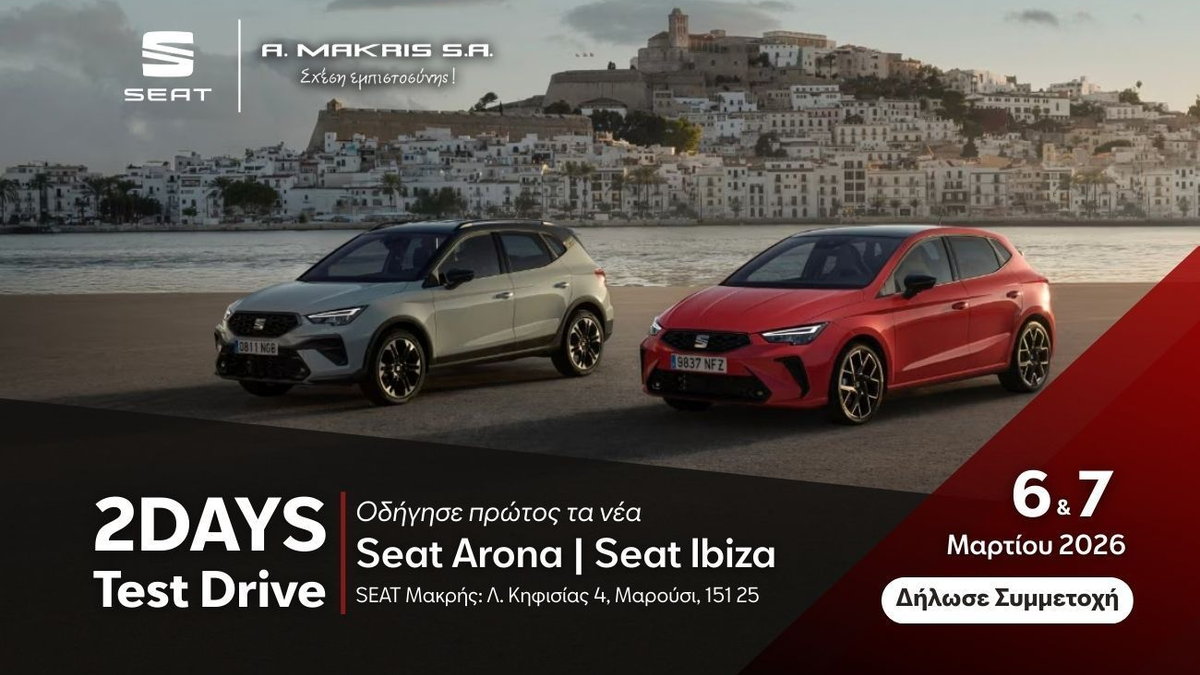 Για δηλώσεις συμμετοχής: https://a-makris.gr/blog/seat-test-drive-2026/ ή τηλεφωνικά.