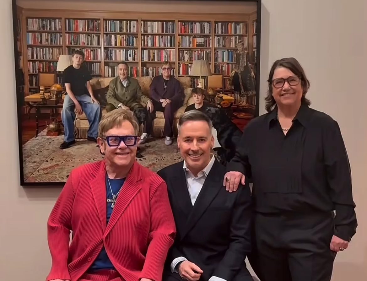 Τη φωτογραφία υπογράφει η Αμερικανίδα καλλιτέχνιδα Κάθριν Όπι, η οποία απαθανάτισε την οικογένεια στη βιβλιοθήκη της κατοικίας τους στο Γουίνδσορ. Στο πορτρέτο, ο Σερ Έλτον εμφανίζεται καθισμένος φορώντας μωβ κοστούμι και χρωματιστά γυαλιά με ροζ φακούς, ο Φέρνις με πράσινο κοστούμι, ενώ οι γιοι τους, Ζάκαρι, 15 ετών, και Ελάιτζα, 13 ετών, φορούν μαύρα μπλουζάκια, ο ένας καθισμένος στο μπράτσο του καναπέ και ο άλλος στο πάτωμα κρατώντας ένα παιχνίδι σκύλου. Μαζί τους ποζάρουν και τα Λαμπραντόρ της οικογένειας, Τζόζεφ και Τζέικομπ.