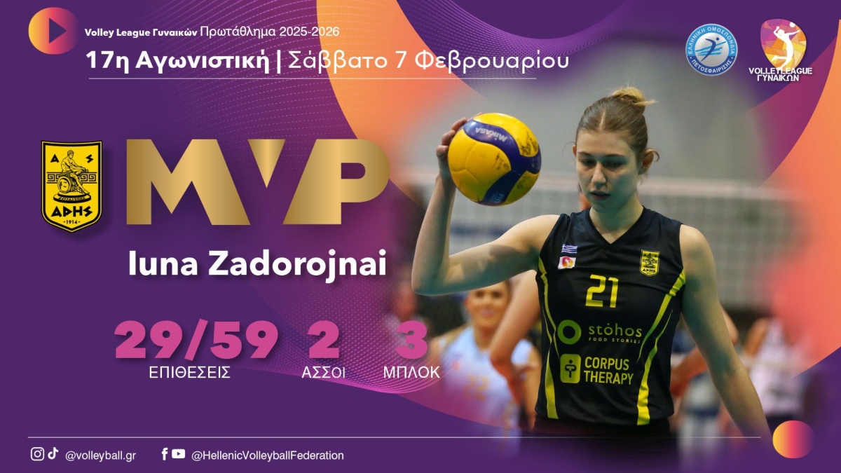 Η Ιούνα Ζαντοροζνάι είχε 34 πόντους, ο οποίοι προήλθαν από 29/59 επιθέσεις (49% αποτελεσματικότητα), 2 άσσους και 3 μπλοκ. Μάλιστα με δικούς της πόντους κατέκτησε ο Άρης το δεύτερο και το τέταρτο σετ, ενώ πέτυχε τους 6 από τους 15 πόντους του τάι μπρέικ.