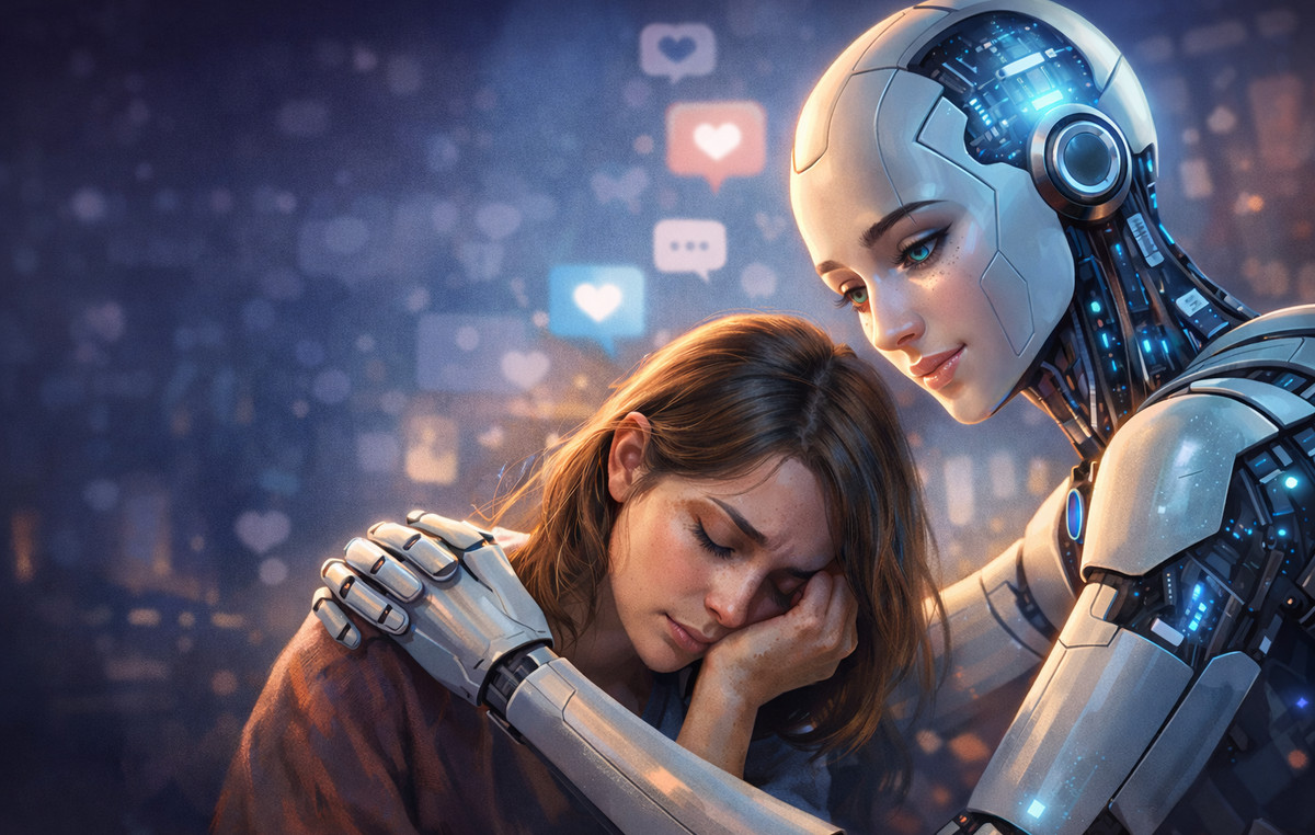 <br><div> <head> <meta name="sentry-trace" content="49769ca6f1f70481b98b2e02ae3813cc-e206cd03f823b694-1"/> <meta name="baggage" content="sentry-environment=production,sentry-public_key=4aed0342affdde5b7763cb5250d27e4b,sentry-trace_id=49769ca6f1f70481b98b2e02ae3813cc,sentry-sample_rate=0.2,sentry-transaction=GET%20%2F%5BcategoryOrGeneric%5D%2Farthro%2F%5Bid%5D%2F%5Bpermalink%5D,sentry-sampled=true"/> <meta charset="utf-8"/><meta name="viewport" content="width=device-width"/><meta name="apple-itunes-app" content="app-id=395922795"/><meta property="fb:app_id" content="4545458865507813"/><meta property="fb:pages" content="124306637585413"/><meta name="robots" content="max-image-preview:large"/><meta property="article:publisher" content="https://www.facebook.com/newsbeast.gr"/><meta name="ahrefs-site-verification" content="272391d43e11e58a8f4570119327fdee42cb9c936058fe67b58614b884485ac7"/><link rel="preload" type="font/woff2" href="https://www.newsbeast.gr/fonts/subset-ZillaSlabGreek-Bold.woff2" as="font" crossorigin="anonymous"/><link rel="preload" type="font/woff2" href="https://www.newsbeast.gr/fonts/subset-ZillaSlabGreek-Medium.woff2" as="font" crossorigin="anonymous"/><link rel="preload" type="font/woff2" href="https://www.newsbeast.gr/fonts/dehinted-subset-AstyCFStd-Bold.woff2" as="font" crossorigin="anonymous"/><link rel="preload" type="font/woff2" href="https://www.newsbeast.gr/fonts/dehinted-subset-AstyCFStd-Medium.woff2" as="font" crossorigin="anonymous"/><link rel="preload" type="font/woff2" href="https://www.newsbeast.gr/fonts/dehinted-subset-AstyCFStd-Book.woff2" as="font" crossorigin="anonymous"/><link rel="icon" type="image/png" href="https://www.newsbeast.gr/favicon-48x48.png?v2" sizes="48x48"/><link rel="icon" type="image/svg+xml" href="https://www.newsbeast.gr/favicon.svg?v2"/><link rel="shortcut icon" href="https://www.newsbeast.gr/favicon.ico?v2"/><link rel="apple-touch-icon" sizes="180x180" href="https://www.newsbeast.gr/apple-touch-icon.png?v2"/><meta name="apple-mobile-web-app-title" content="Newsbeast"/><link rel="manifest" href="https://www.newsbeast.gr/site.webmanifest"/> <title>Ψηφιακή παρηγοριά ή ψευδαίσθηση σχέσης; Όταν η τεχνητή νοημοσύνη «ακούει» και «συμπάσχει» – Τα οφέλη και οι κίνδυνοι - Newsbeast</title><link rel="canonical" href="https://www.newsbeast.gr/technology/arthro/13025914/psifiaki-parigoria-i-psevdaisthisi-schesis-otan-i-techniti-noimosyni-akouei-kai-sybaschei-ta-ofeli-kai-oi-kindynoi"/><meta name="description" content="Η συζήτηση για τη σχέση της ψυχικής υγείας με την τεχνητή νοημοσύνη δεν ανήκει πια στο μέλλον."/><meta name="robots" content="index, follow"/><meta property="og:title" content="Ψηφιακή παρηγοριά ή ψευδαίσθηση σχέσης; Όταν η τεχνητή νοημοσύνη «ακούει» και «συμπάσχει» – Τα οφέλη και οι κίνδυνοι"/><meta property="og:type" content="article"/><meta property="og:image" content="https://www.newsbeast.gr/image/s1200x762/fill/file/files/1/2026/04/adroind-ai.png"/><meta property="og:url" content="https://www.newsbeast.gr/technology/arthro/13025914/psifiaki-parigoria-i-psevdaisthisi-schesis-otan-i-techniti-noimosyni-akouei-kai-sybaschei-ta-ofeli-kai-oi-kindynoi"/><meta property="og:description" content="Η ΑΙ εισβάλλει δυναμικά στην ψυχική υγεία, ανοίγοντας δρόμους υποστήριξης αλλά και κρίσιμα ερωτήματα για τα όριά της"/><meta property="og:locale" content="el_GR"/><meta property="og:site_name" content="Newsbeast"/><meta property="og:image:url" content="https://www.newsbeast.gr/image/s1200x762/fill/file/files/1/2026/04/adroind-ai.png"/><meta property="og:image:width" content="1200"/><meta property="og:image:height" content="762"/><meta property="article:published_time" content="2026-04-11T10:36:00.000Z"/><meta property="article:section" content="ΤΕΧΝΟΛΟΓΙΑ"/><meta property="article:tag" content="ΑΙ (τεχνητή νοημοσύνη)"/><meta name="twitter:card" content="summary_large_image"/><meta name="twitter:site" content="@newsbeast"/><meta name="twitter:title" content="Ψηφιακή παρηγοριά ή ψευδαίσθηση σχέσης; Όταν η τεχνητή νοημοσύνη «ακούει» και «συμπάσχει» – Τα οφέλη και οι κίνδυνοι"/><meta name="twitter:image" content="https://www.newsbeast.gr/image/s1200x762/fill/file/files/1/2026/04/adroind-ai.png"/><meta name="twitter:description" content="Η συζήτηση για τη σχέση της ψυχικής υγείας με την τεχνητή νοημοσύνη δεν ανήκει πια στο μέλλον."/><meta name="twitter:creator" content="@newsbeast"/> </head> <body style=";--skinTop: 0px;--skinTopMD: 0px;" data-astro-cid-wb6454xr="" id="wp_automatic_ReadabilityBody"> <noscript> <iframe src="https://www.googletagmanager.com/ns.html?id=GTM-NZP8LMW" height="0" width="0" style="display:none;visibility:hidden; --skinTop: 0px;--skinTopMD: 0px;" data-astro-cid-wb6454xr=""></iframe> </noscript> <astro-island uid="Z1nFR71" prefix="r2" component-url="/_astro/our-toast.CBn5yJ2Y.js" component-export="default" renderer-url="/_astro/client.BHFnN16a.js" props="{"data-astro-cid-wb6454xr":[0,true],"data-astro-transition-persist":[0,"astro-wa32domj-1"]}" ssr="" client="load" opts="{"name":"OurToast","value":true}" data-astro-transition-persist="astro-wa32domj-1" await-children=""><!--astro:end--></astro-island> <svg style="display:none"> <symbol xmlns="http://www.w3.org/2000/svg" id="iconClock" viewbox="0 0 11 11"> <path fill="white" d="M11,5.5c0,3-2.5,5.5-5.5,5.5C2.5,11,0,8.5,0,5.5S2.5,0,5.5,0c1.7,0,3.3,0.8,4.3,2.1l0.9-0.7 		c0.1-0.1,0.2-0.1,0.2,0c0,0,0,0.1,0,0.1l-0.3