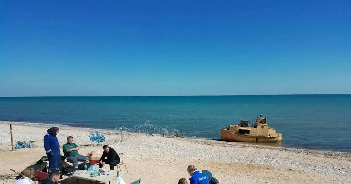 Τα μέλη του πληρώματος ενός φορτηγού πλοίου που ναυάγησε στην Αζοφική Θάλασσα, σώθηκαν και τους παρέχεται βοήθεια στις ακτές του τμήματος της περιφέρειας Χερσόν που ελέγχεται από τη Ρωσία / Telegram/Handout via REUTERS
