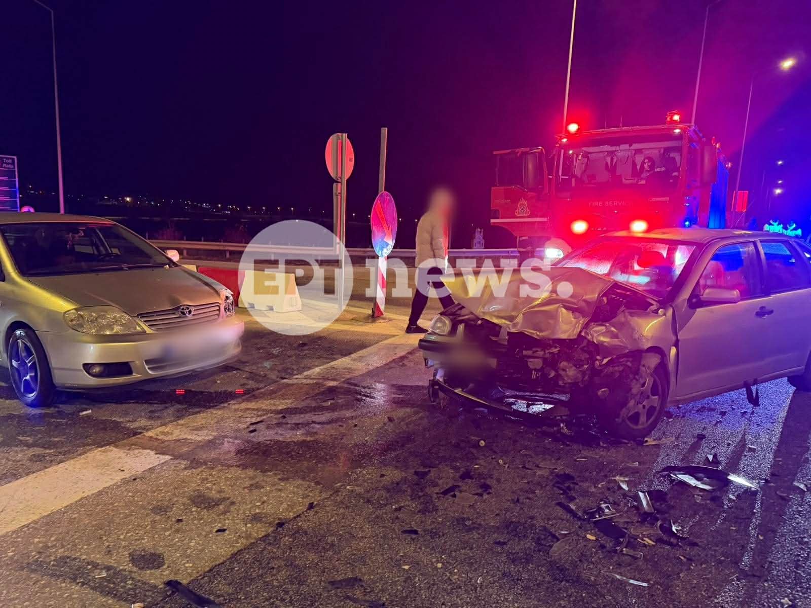 Από την σφοδρότητα της σύγκρουσης δύο από τους επιβαίνοντες τραυματίστηκαν και παρελήφθησαν από ασθενοφόρα, προκειμένου να διακομιστούν στο νοσοκομείο για την παροχή των πρώτων βοηθειών και τη διενέργεια εξετάσεων.