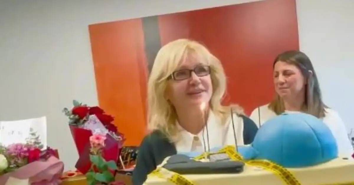 Λίγο μετά, όπως φαίνεται στο βίντεο, η ίδια μπαίνει στο γραφείο και αιφνιδιάζεται από την έκπληξη που της έχουν οργανώσει.