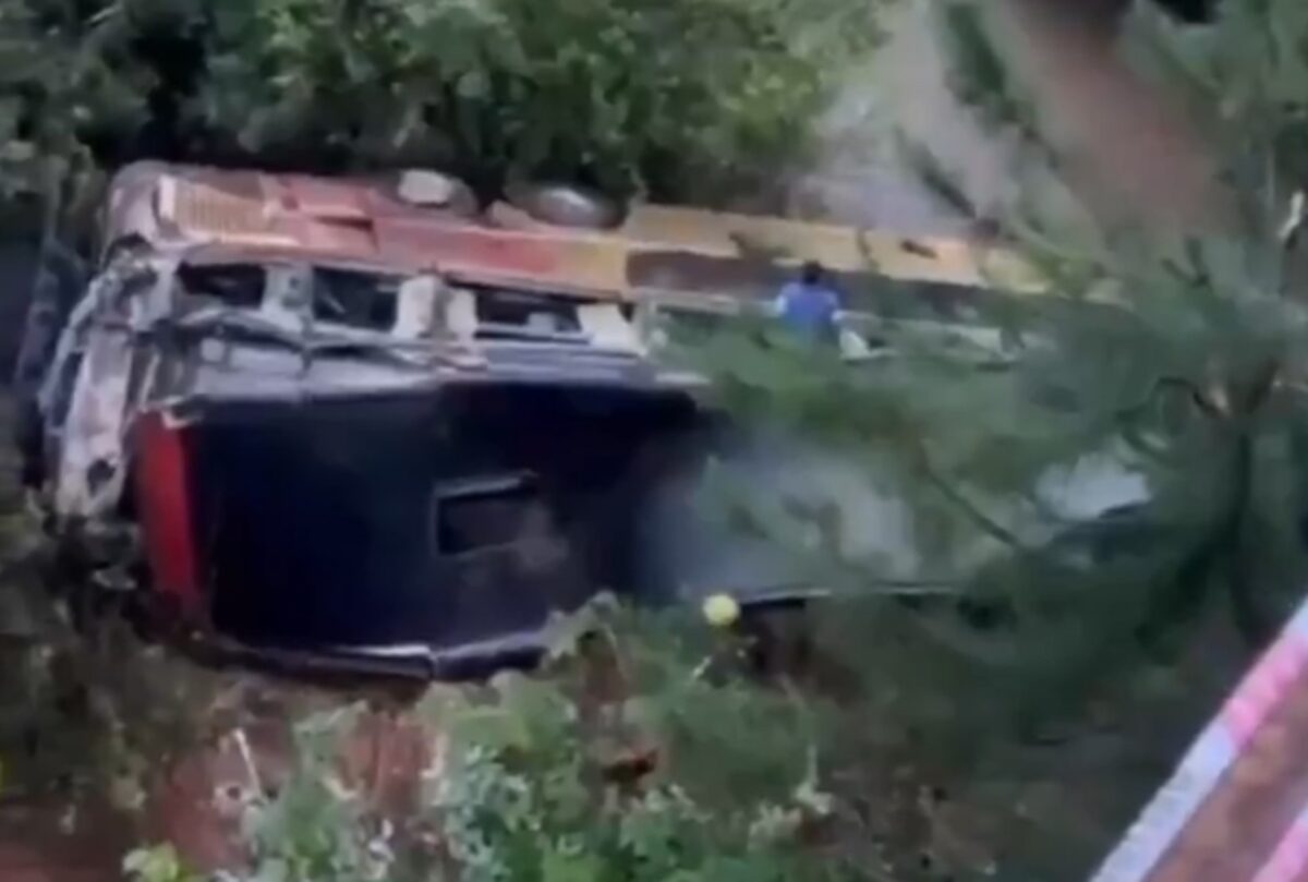 Ως αποτέλεσμα της σύγκρουσης, το λεωφορείο πήρε κλίση και έπεσε από τη γέφυρα στην κοίτη ενός ποταμού, σε βάθος αρκετών μέτρων.