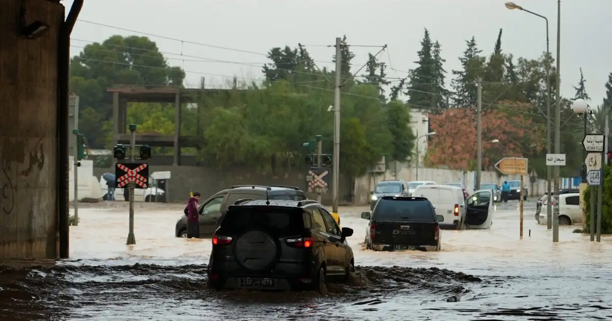 Η Τυνησία «έχει παραλύσει εξαιτίας θανάσιμων καταιγίδων», μετέδωσε το κρατικό πρακτορείο ειδήσεων με σοκαριστικά βίντεο στα social media να δείχνουν ανθρώπους να παλεύουν με τις πλημμύρες, που έχουν «πνίξει» οχήματα και περιουσίες.