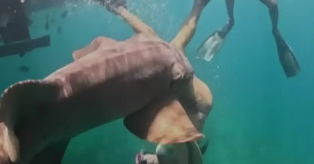 Στο βίντεο η γυναίκα φαίνεται αρχικά να βουτάει ανέμελα από σκάφος στα καταγάλανα νερά, χωρίς να αντιλαμβάνεται τον κίνδυνο που πλησιάζει.
